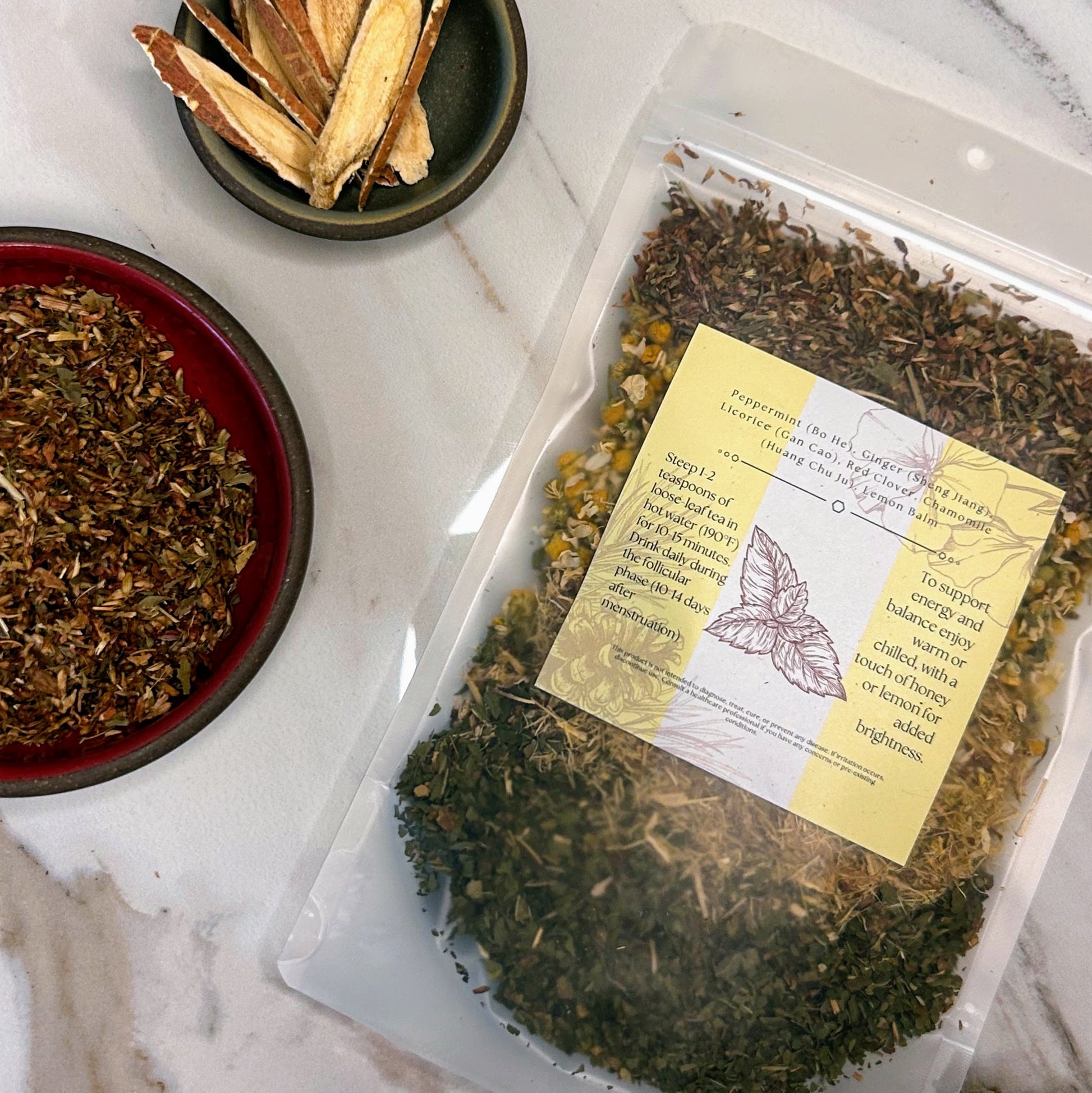 Ingredients: Angelica Sinensis (Dang Gui), Ginger, Calendula, Peppermint, Yarrow, Apple, Cardamom